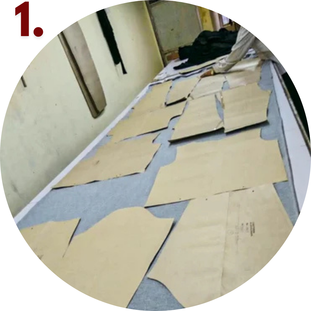 After sourcing, the fabric is cut into panels based on the patterns. Then, depending on the client's requirements, these panels undergo printing or embroidery.